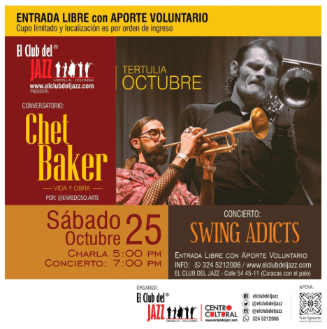 En esta tertulia exploraremos la vida y obra del gran CHET BAKER, su historia, los orígenes, inspiraciones, amores, luchas internas, inspiraciones, reinvenciones, y en general, la vida de este gran músico que dejaría esa marca tan profunda en la historia del jazz, y en el alma de quienes llevamos sus melodías en nuestros corazones.