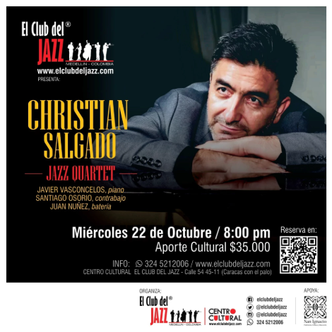 Cantar es la gran pasión de Christian Salgado, fundador y director de El Club del Jazz. Y aunque en contadas ocasiones se presenta en concierto, este 22 de octubre abrirá su corazón y su voz para compartir contigo lo que más ama: el canto jazz.