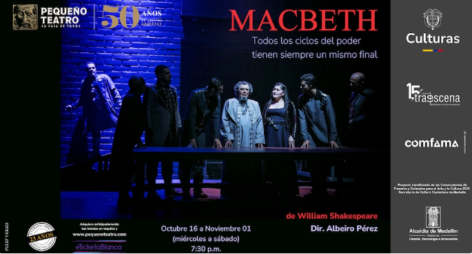 “Macbeth”, la obra maestra de William Shakespeare, cobra vida de manera impactante en esta innovadora puesta en escena dirigida por Albeiro Pérez. Esta historia atemporal sigue la trágica transformación de Macbeth, un general escocés, quien, instigado por la profecía de tres brujas y la ambición desmedida de su esposa, se ve arrastrado a un torbellino de asesinatos y paranoia en su búsqueda del poder.