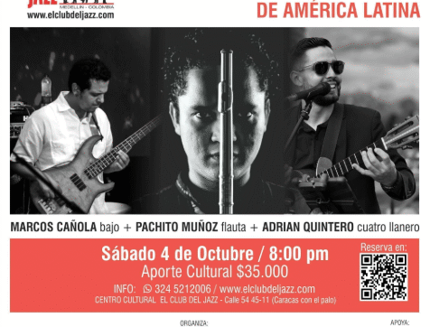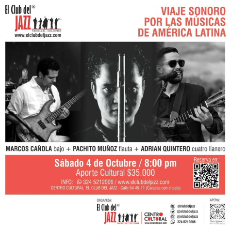 Acompaña a El Club del Jazz a celebrar esta experiencia y fusión musical que nos transportará por los ritmos y melodías que definen la riqueza cultural de nuestro continente en las manos de estros tres importantes maestros de la ciudad. Cada instrumento se entrelaza para crear paisajes sonoros únicos, llenos de pasión y autenticidad, fusionados con el jazz.