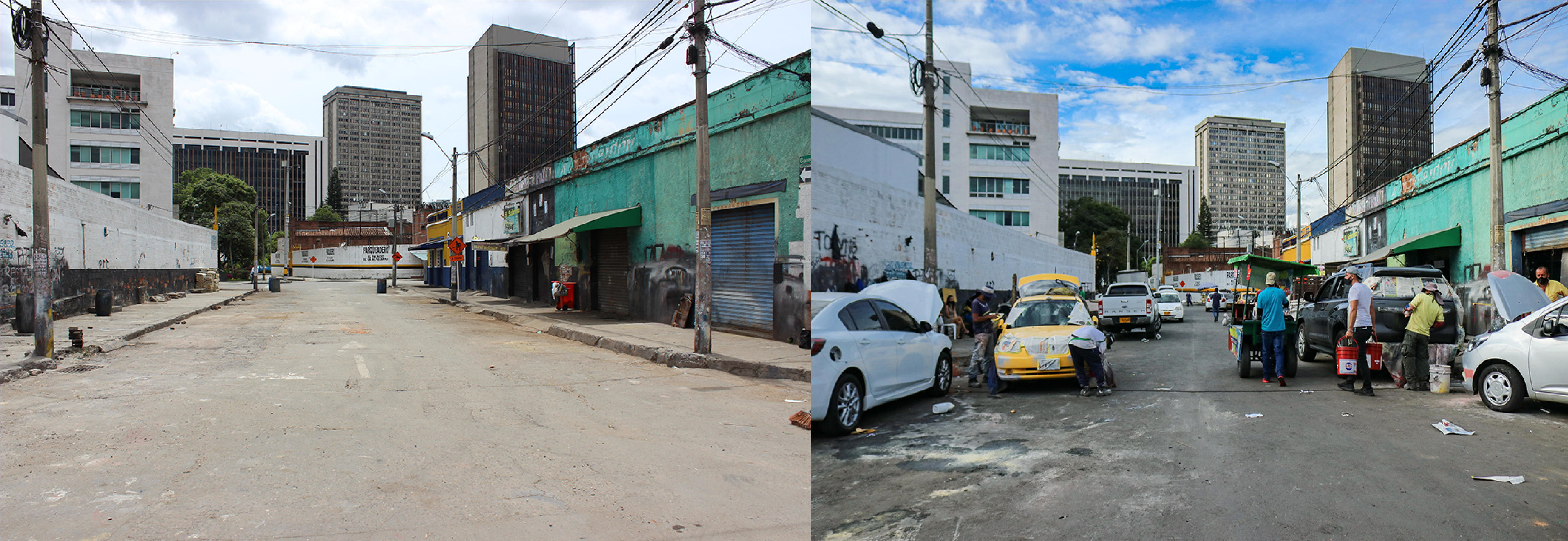 Arriba, cómo quedó el sector después de la intervención realizada por la Alcaldía de Medellín. Abajo, cómo se encuentra después de 15 días de la jornada que se llevó a cabo en el marco de las acciones integrales por la declaratoria de Cuidado Total en La Candelaria. Fotos: Omar Portela.